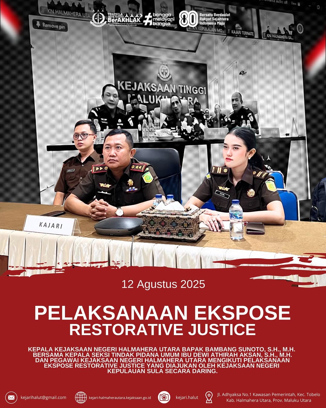 Pelaksanaan Ekspose Restorative Justice yang diajukan oleh Kejaksaan Negeri Kepulauan Sula secara daring.